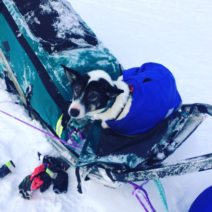 Chili is my only Iditarod veteran in my kennel. She looks like a little Jack Russel Terrier and boy let me tell you she's got spunk! She is one of my main leaders and is spot on Gee/Haw commands. Chili also keeps the young dogs in line and everyone working! She is doing more puppy training and leading tours lately. Her short little legs make it hard for her to keep up with the race dogs